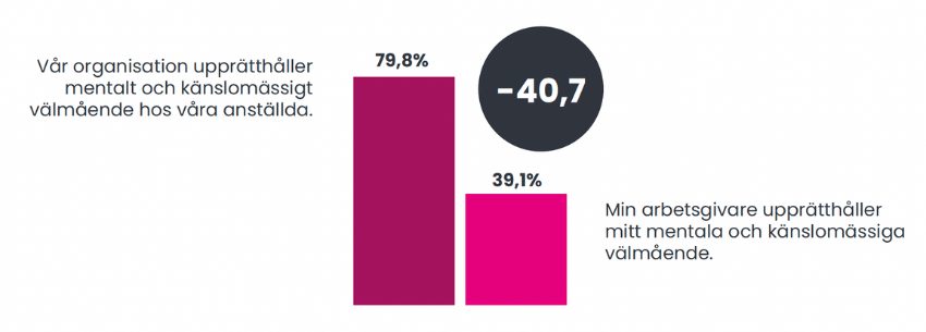 Vi har alltså fastslagit att investeringar i välmående är otroligt viktigt för att bibehålla medarbetarnas engagemang. Dock avslöjar studien slående skillnader i hur arbetsgivare och medarbetare uppfattar organisationens insatser. Medan cirka fyra av fem arbetsgivare tror att deras organisation stöder både det fysiska och mentala välmåendet hos deras medarbetare, upplever inte ens hälften av medarbetarna att deras arbetsgivare faktiskt prioriterar deras fysiska välmående. Ännu värre är att inte ens fyrtio procent av medarbetarna anser att deras arbetsgivare upprätthåller deras mentala och känslomässiga välmående. Arbetsgivare måste alltså rannsaka sig själva och börja prioritera medarbetarnas välmående omgående för att bryta denna negativa trend.
